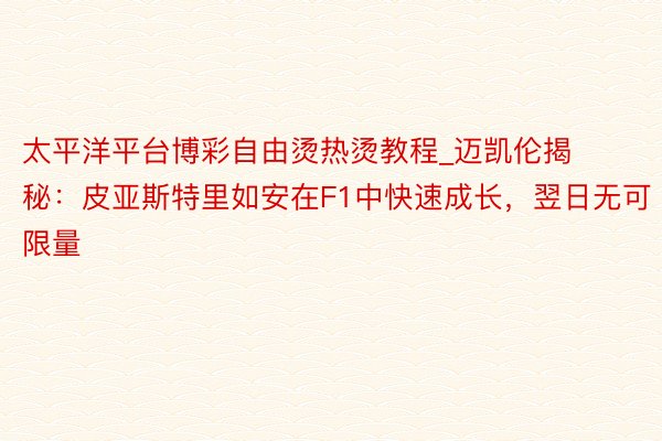 太平洋平台博彩自由烫热烫教程_迈凯伦揭秘:皮亚斯特里如安在F1中快速成长,翌日无可限量