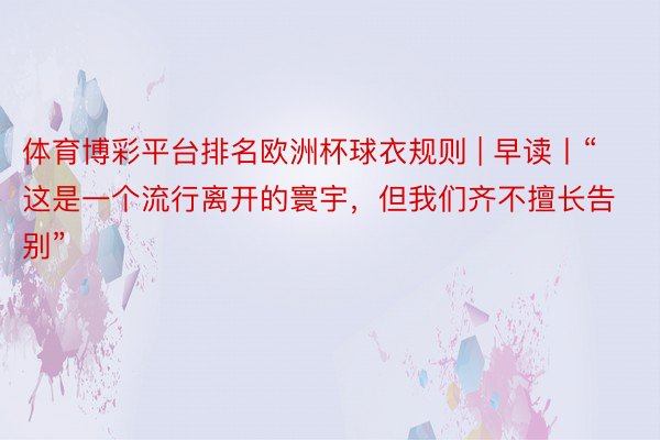 体育博彩平台排名欧洲杯球衣规则 | 早读丨“这是一个流行离开的寰宇,但我们齐不擅长告别”