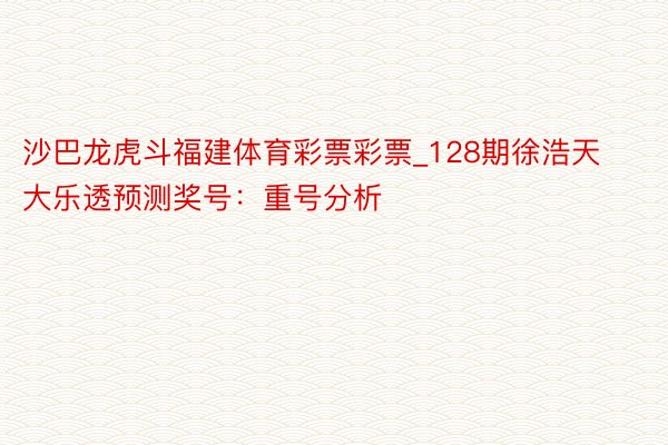 沙巴龙虎斗福建体育彩票彩票_128期徐浩天大乐透预测奖号:重号分析